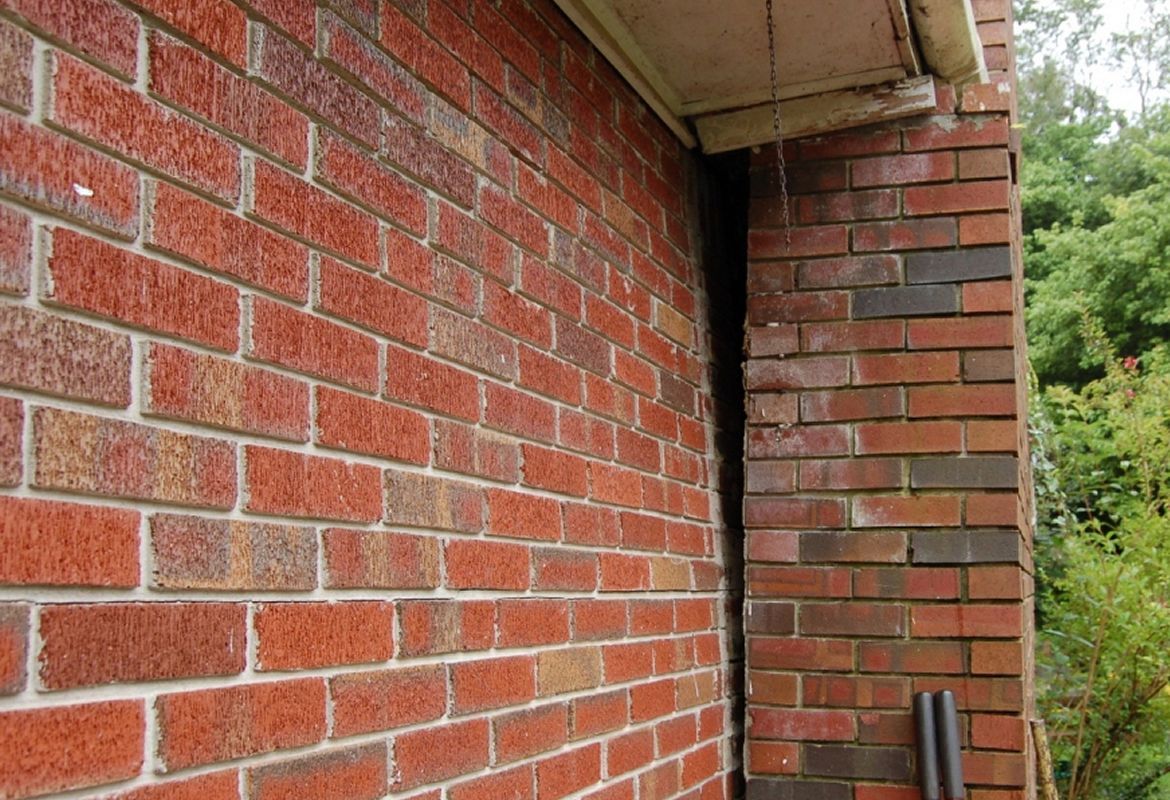 Stair-step cracking is very common in brick and concrete block walls and is a sign of foundation settlement. As the foundation settlement continues, vertical cracks may widen or become uneven as wall sections tilt away from each other, indicating more severe displacement.